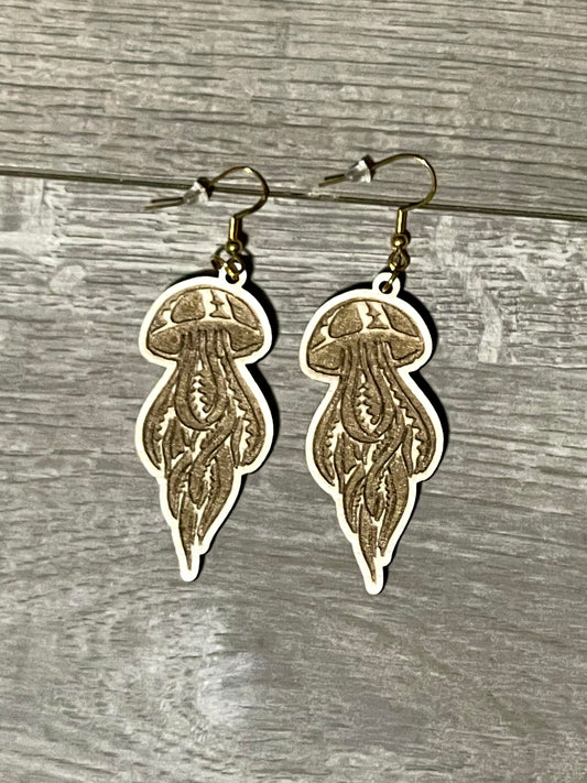 Wooden Tribal Jelly Fish Earrings