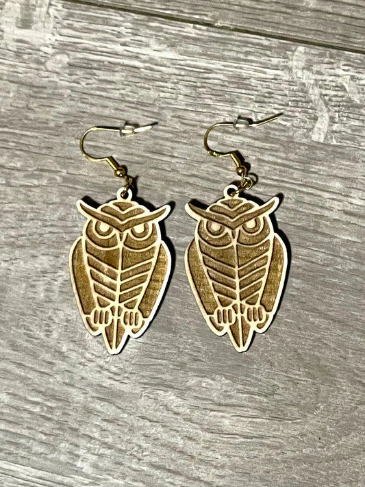 Wooden Tribal Owl Earrings