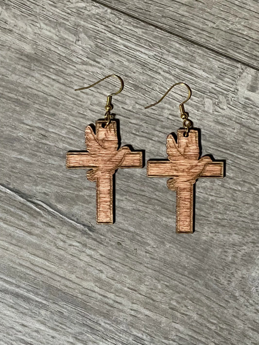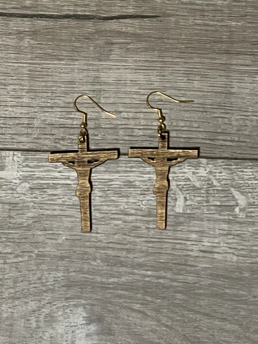 Wooden Crucifix Earrings