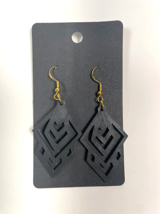 Wooden Diamond Cutout Earrings